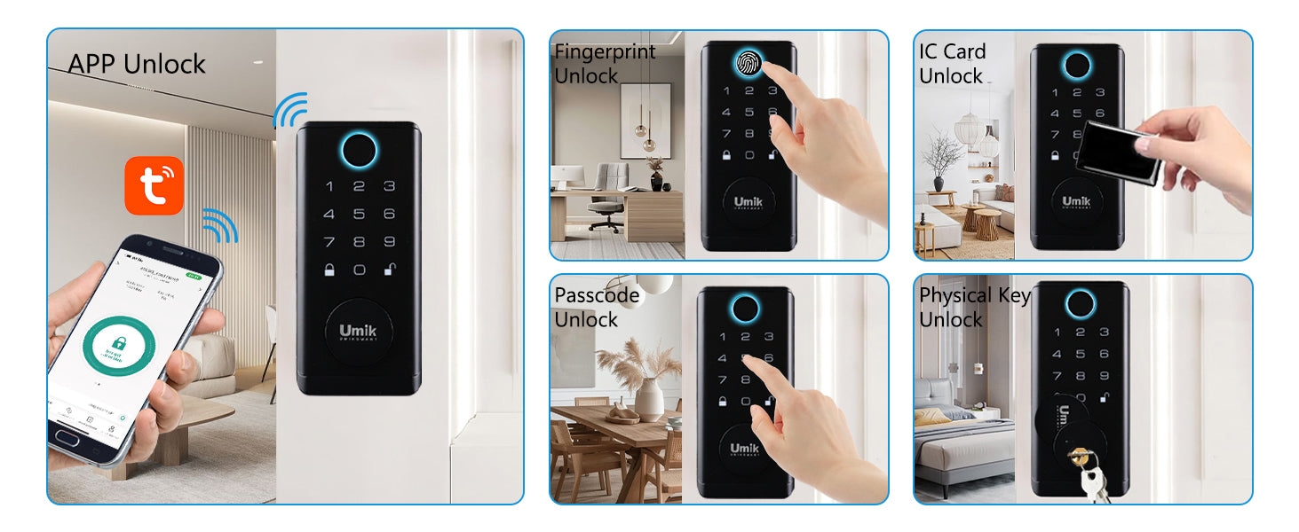 Unlock Methods | Fingerprint, Passcode, IC Card, App (Tuya), Mechanical Key |