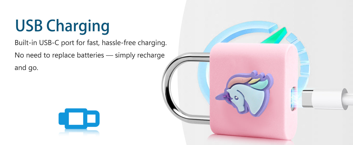 UMIKSMART Keyless Fingerprint Lock, Waterproof USB Rechargeable Smart Padlock for Bookcase, Suitcase, Locker, Gym, Outdoor Gate, Cosmic Blue Set