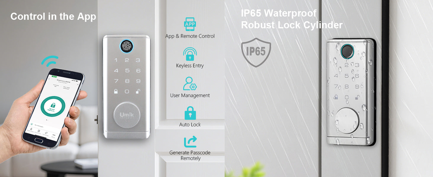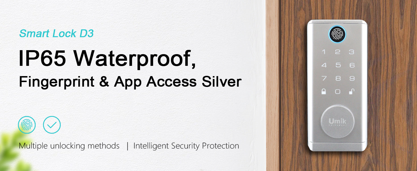Umiksmart-Smart Lock D3 – IP65 Waterproof, Fingerprint & App Access Silver.