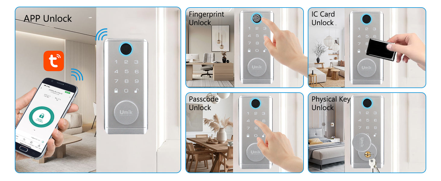 Unlock Methods Fingerprint, Passcode, IC Card, App (Tuya), Mechanical Key